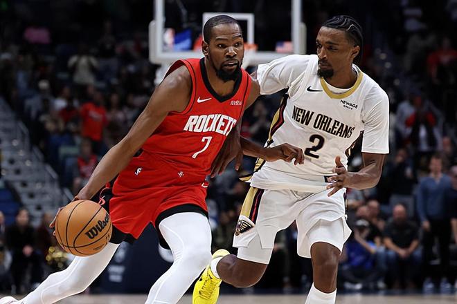 此前的NBA常规赛,主场作战的新奥尔良鹈鹕队在第四节完成翻盘,经过加时赛以133-128击败休斯敦火箭队。本场比赛过后,取得三连胜的鹈鹕队将战绩提升至6胜22负,继续排名西部垫底,但仅落后洛杉矶快船队半个胜场。遭遇两连败的火箭队战绩跌至16胜8负,仅排名西部第五,但仅落后明尼苏达森林狼队半个胜场。本场比赛,虽然火箭队输掉了比赛,但是球队的锋线凯文杜兰特的表现确实非常出色。杜兰特出战42分51秒,投篮15投12中,三分线外6投4中,罚球4投4中。他拿下全场最高的32分,效率很高,其中包括7个篮板、2次助攻、1次抢断和4次盖帽。他还出现了6次失误和2次犯规,正负值为-7。杜兰特在进攻端秒杀所有人,展现出超强的得分能力和投篮能力。他的角色也非常好。敌人根本没有办法限制他强大的攻击和强力的射击。不仅如此,他在防守端的表现也相当出色,并且在防守端也发挥了很大的作用。总体来说,本场比赛杜兰特的表现也算是攻守兼备。遗憾的是,队内其他球员并没有给他主要支持。其他球员的表现非常令人失望。虽然杜兰特很努力,但是并没有取得很好的成绩,球队最终还是输掉了比赛。上赛季NBA常规赛,杜兰特总共代表老东家菲尼克斯太阳队出场62次,场均出场36.5分钟。场均贡献26.6分6篮板4.2助攻0.8抢断1.2盖帽。他还有3.1次失误和1.7次犯规。投篮命中率52.7%,三分命中率43%,投篮命中率83.9%罚球线。在此前的NBA季前赛中,杜兰特一共为火箭队出场2次,场均出场25.7分钟。场均贡献17.5分3篮板1.5助攻0.5抢断0.5盖帽。他还有2次失误和0.5次犯规。他的投篮命中率为56.5%,三分命中率为20%,罚球命中率为88.9%。本赛季NBA常规赛,杜兰特截至目前前24场比赛共出战22次,场均上场35.8分钟,场均出场36.1分钟,得到25.1分4.7篮板3.9助攻1抢断1盖帽,还有3.2次失误2次,投篮命中率51.3%,三分命中率42%,罚球命中率89.4%。杜兰特本赛季的整体表现依然能够保持在不错的水平。他也是一名可靠的得分手和出色的射手,在进攻端依然能为球队提供大量的支持。不过这场比赛的情况或多或少会让我们感到有些担心关于球队的情况,有些担忧。关键时刻,一旦杜兰特面临包夹,火箭其他球员的得分和投篮能力就会非常有限,火箭的进攻就会遇到大问题。在伊梅乌多卡的严格战术下,杜兰特显得十分吃力,想要给球队更多的帮助确实很难。如果再这样下去,恐怕其他球队会继续模仿鹈鹕对阵火箭的打法,接下来的比赛会更加艰难。